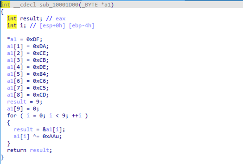 updat.log) is not hardcoded. It is reconstructed at runtime using a simple XOR decode (0xAA) over a static byte array.
