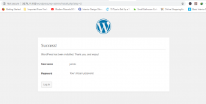 Cuộn xuống và nhấn ‘Install WordPress’. Nếu mọi việc suôn sẻ, bạn sẽ nhận được thông báo ‘Success’ (Thành công).