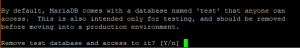 Sau khi cài đặt xong, hãy bảo mật cơ sở dữ liệu MariaDB của chúng ta và không cho phép đăng nhập root từ xa.
