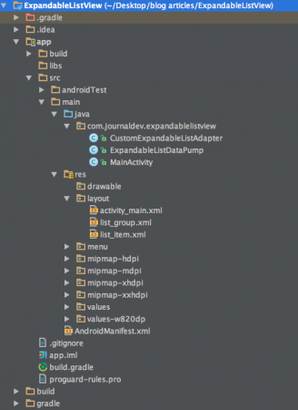 Cấu trúc dự án của Android ExpandableListView