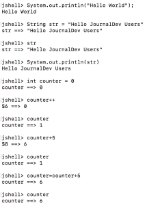 Bây giờ, đã đến lúc thực thi một vài ví dụ Java đơn giản để trải nghiệm công cụ Java REPL.