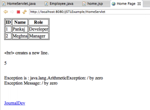 Bây giờ khi chúng ta chạy ứng dụng với URL https://localhost:8080/JSTLExample/HomeServlet, chúng ta sẽ nhận được phản hồi như hình ảnh bên dưới.