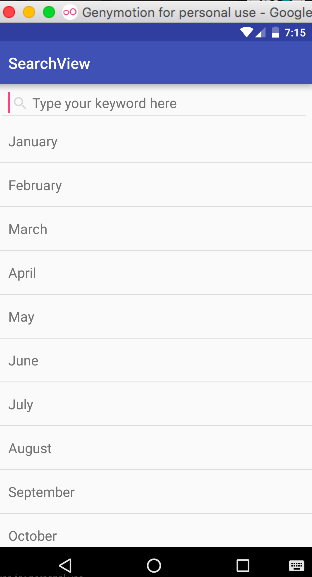 Hình ảnh bên dưới minh họa kết quả cuối cùng của ứng dụng mẫu sử dụng SearchView trong Android.