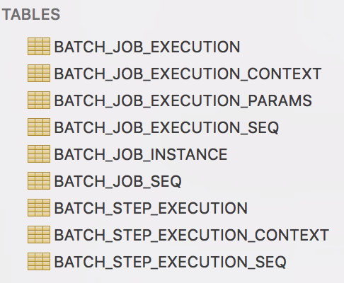 . Bạn có thể để chúng được tạo tự động từ cấu hình Spring Batch, nhưng tốt hơn hết là tạo chúng thủ công bằng cách thực thi các tệp SQL. Về mặt bảo mật, tốt hơn là không cấp quyền thực thi DDL (Data Definition Language) cho người dùng cơ sở dữ liệu của Spring Batch.